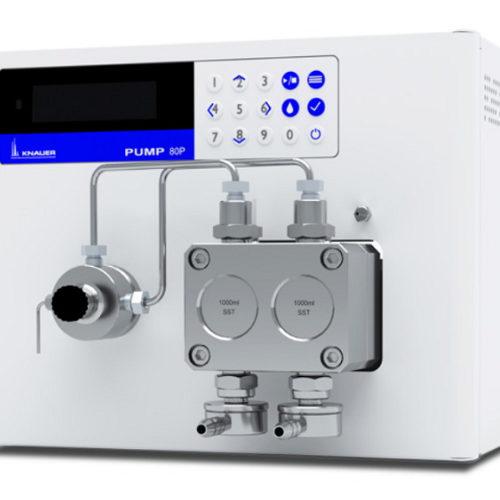 KNAUER dosing pumps are highly accurate two-piston pumps for applications in the chemical and pharmaceutical industries as well as in research and method development. They pump and dose aqueous and organic liquids, aggressive media or liquid gases. The metering pumps impress with their high chemical resistance, excellent flow rate precision and low pulsation of the pumped medium in a wide range of applications: