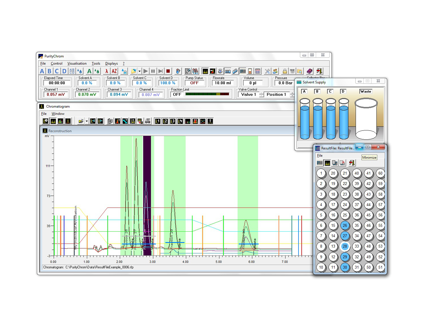 Il est conçu pour répondre à toutes les tâches de séparation en biopurification et en HPLC préparative. La visualisation animée du chemin d'écoulement de PurityChrom 6 améliore l'ergonomie et la rédaction des méthodes tout en offrant une collecte intelligente des fractions et la possibilité de configurer différents systèmes dans un seul programme.